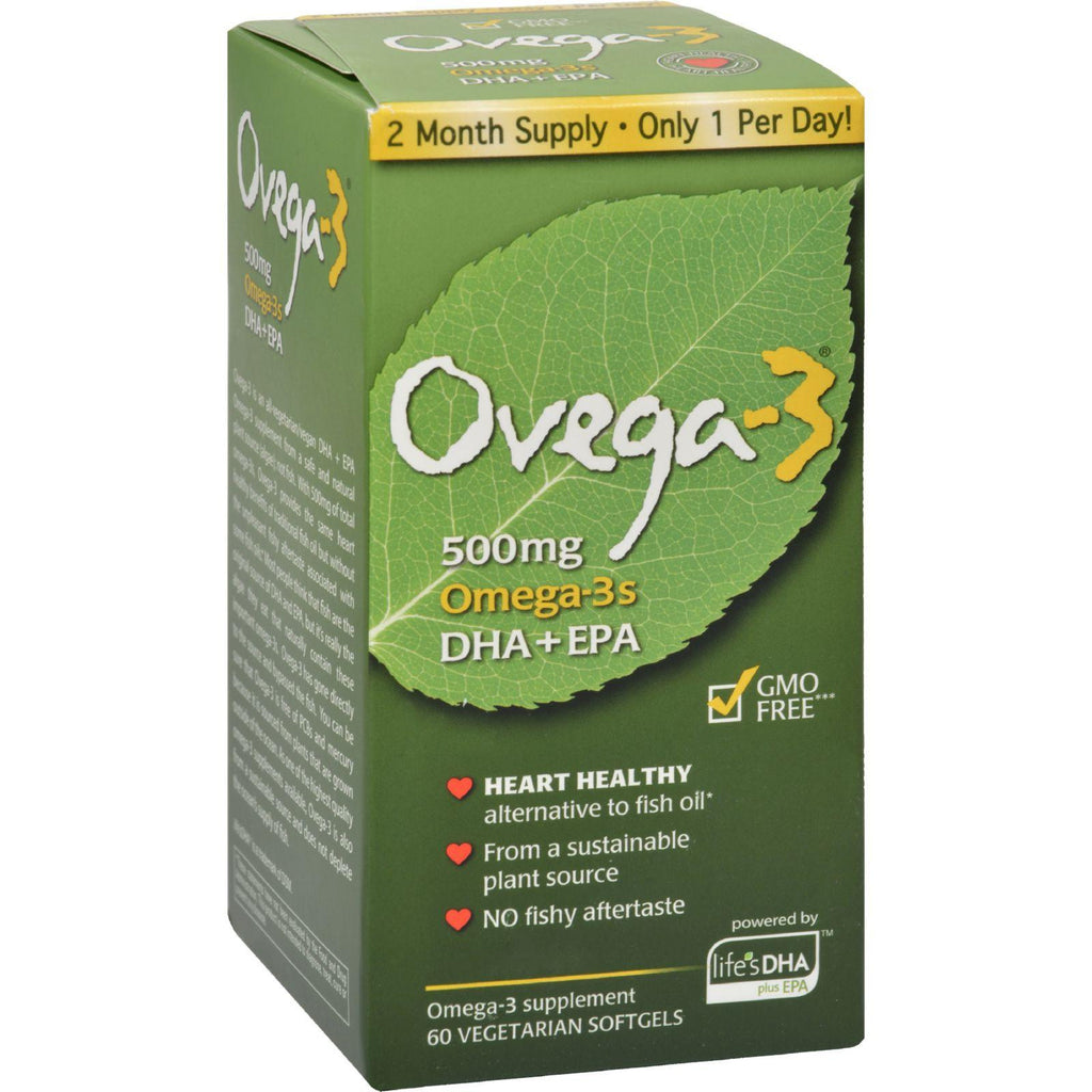 Introducing Ovega-3, an all-vegetarian DHA + EPA Omega-3 supplement from a safe and natural plant source (algae); not fish. With 500 mg of total omega-3s, Ovega-3 provides the same heart healthy benefits of traditional fish oil but without the unpleasant fishy aftertaste associated with some fish oils. Most people think that fish are the original source of DHA and EPA, but it's really the algae they eat that naturally contain these important omega-3s. Ovega-3 has gone directly to the source and bypassed the fish. You can be sure that Ovega-3 is 100% free of PCBs and mercury because it is sourced from plants that are grown outside of the ocean. As one of the highest quality omega-3 supplements available, Ovega-3 is also from a sustainable source and does not deplete the ocean's supply of fish.