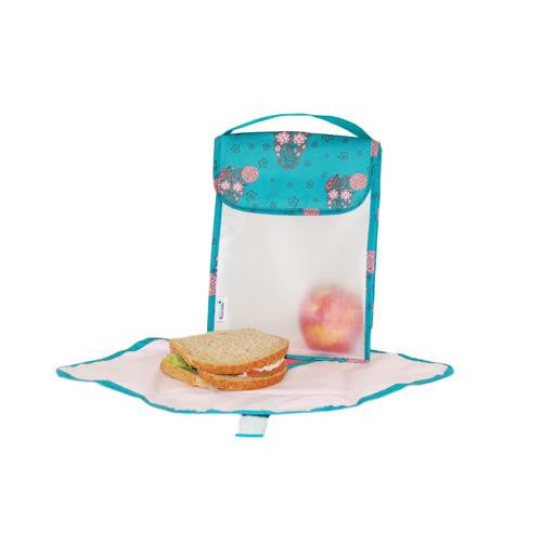 Eco-friendly translucent tower shape reusable lunch bag allows easy visibility of contents, perfect for school. 2 piece kit includes translucent lunch bag and an eco mat (placemat)
