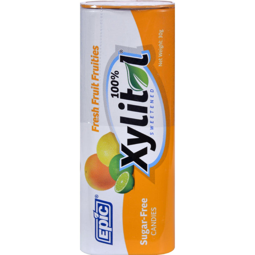 These eOMG! These Are My Favorite!e mints deliver an irresistible dose of fruity yumminess. Sugar-free and sweetened exclusively with xylitol, Epic's Fresh Fruit Mints give a little kick to your daily 6 grams of xylitol that dentists worldwide recommend to help stop tooth decay. Weere perfect for those whoeve always picked the orange tic tacs e and youere assured, too, that those with lesser palettes than yours will shy away - too timid to step up to the fruity-healthy-minted plate. DETAILS Perfect for your Pocket or Purse 100% Xylitol-Sweetened Contains NO Aspartame Natural Citrus Flavors, Contains NO Mint