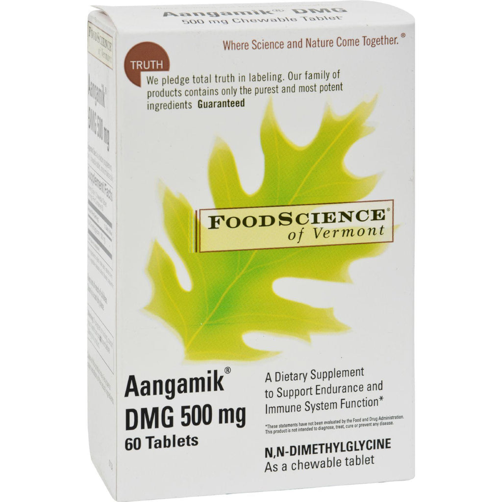 FoodScience of Vermont Aangamik DMG Description: N, N-Dimethylglycine as a chewable tablet. A dietary supplement to support endurance and immune system function.