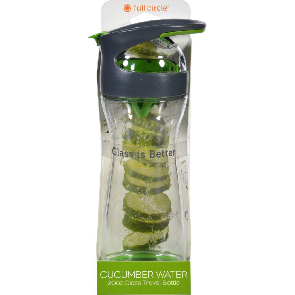 Full Circle Home Cucumber Water Bottle - Travel - Glass - Wherever Water - Gray - 20 Oz