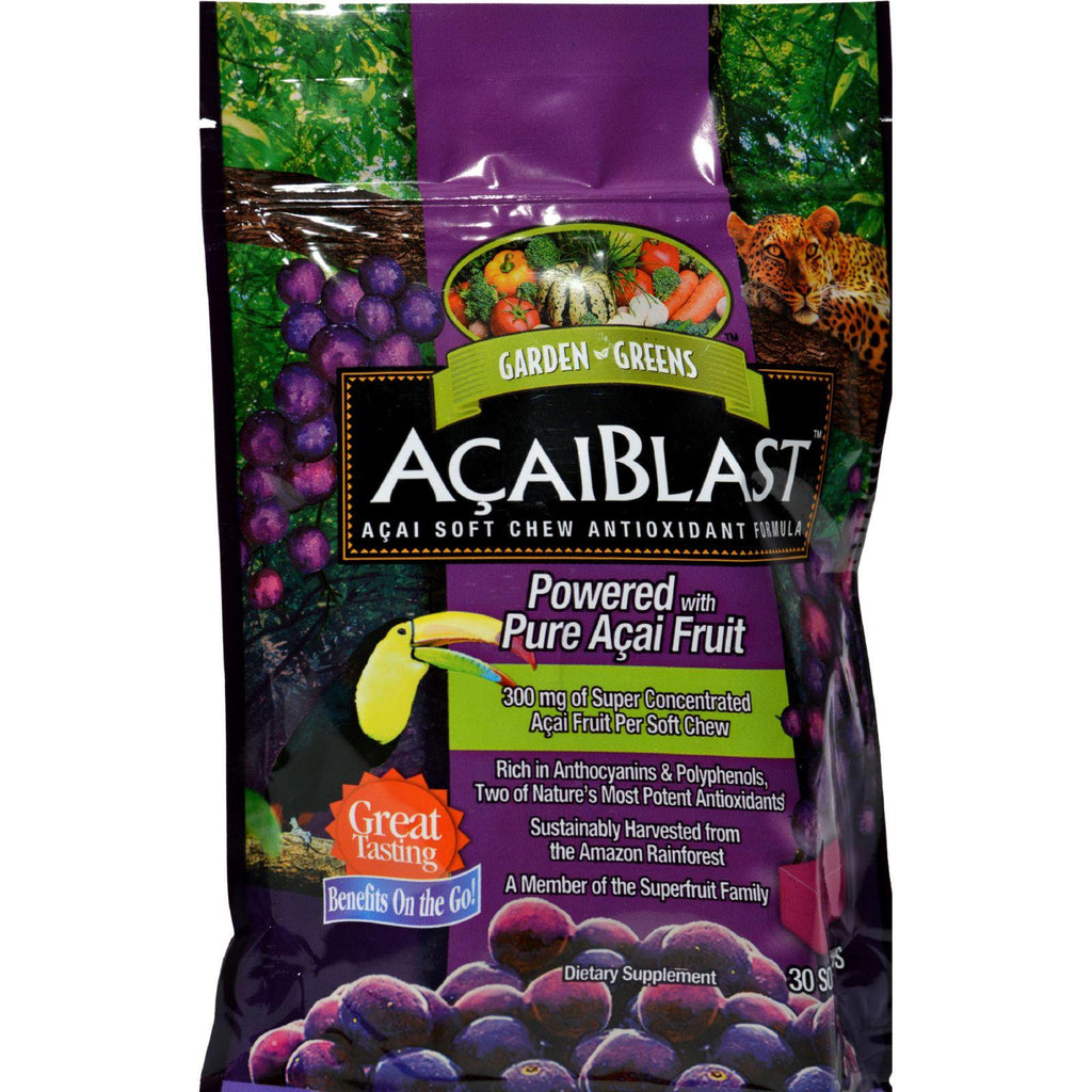 Benefits On the Go! Garden Greens AcaiBlast gives you all the benefits of Acai fruit in one delicious soft chew. The Acai fruit grows on top of lush palm trees in the heart of the Amazon Rainforest. Acai is considered to be part of the superfruit category because it is rich in polyphenols and anthocyanins, two of nature's most powerful antioxidants.