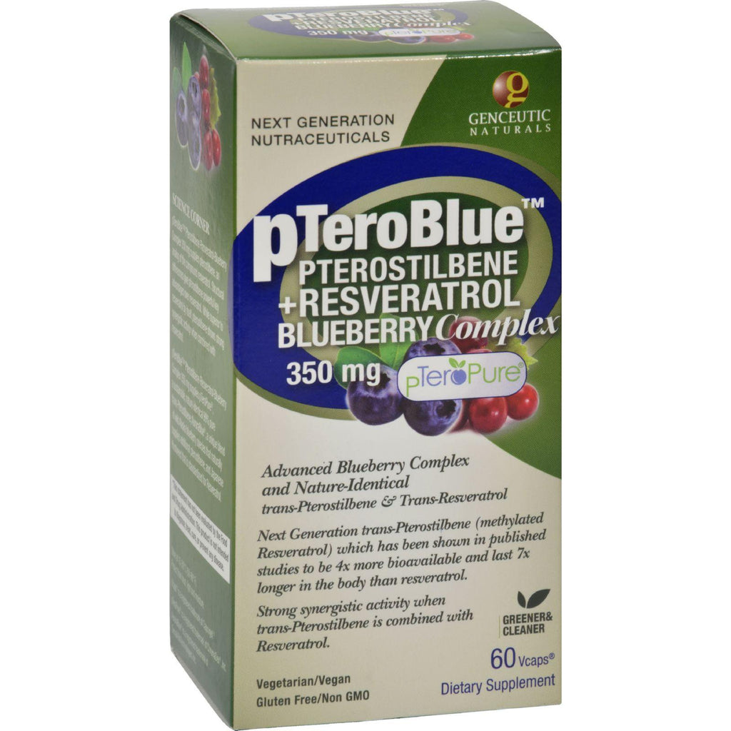 Genceutic Naturals Pteroblue Pterostilbene Plus Resveratrol - 350 Mg - 60 Vcaps