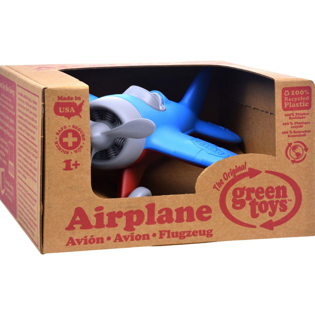 The Green Toys Airplane is one aircraft, Mother Nature is happy to clear for take off. Made in the USA from 100% recycled plastic milk jugs that save energy and reduce greenhouse gas emissions, this single-seater plane features a spinning propeller, two-wheeled landing gear and racing stripes on its rounded wings. Imaginations will soar to new heights as pilots-in-training practice loops, rolls and spins with this flyer. The lightweight design and tapered, easy-to-grasp body shape let even the littlest aviators ascend through flight school with ease. No BPA, phthalates, PVC or external coatings, and also meets FDA food contact standards. Packaged with recycled and recyclable materials and printed with soy inks. Recommended for ages 1 and above. Dimensions: 9"L x 9"W x 4"H.