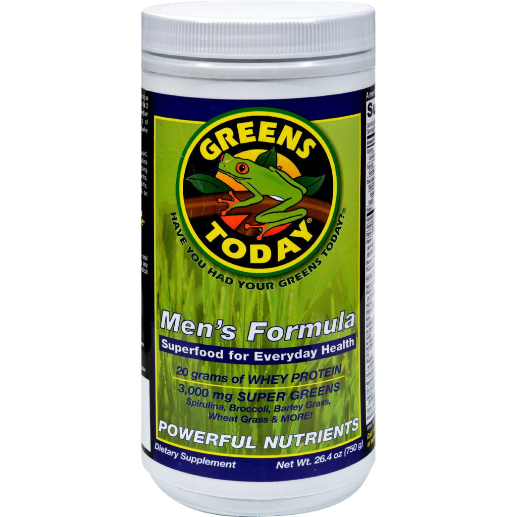 Greens Today Men's Formula Description: Superfood For the Libido with Prostate Protective Factors. May Reduce the Risk of Heart Disease. 72 Powerful Superfoods Plus Whey Protein, Wild Yam, Sarsaparilla, Maca, Horny Goat Weed, Muira Puama, Saw Palmetto, Tribulus Terrestris, L-Arginine, Pygeum Africanum, L-Carnitine, Extra Zinc and So Much More! Greens Today Men's Formula is an Unsurpassed, Advanced Phyto-Nutrient Rich Superfood which contains 72 uniquely combined nutraceutical ingredients plus Whey Protein Concentrate, Wild Yam, Sarsaparilla, Muira Puama, Saw Palmetto, Maca, Yohimbe, Tribulus Terrestris, L-Arginine, Pygeum Africanum, Stinging Nettles Extract, Lycopene, Zinc and so much more.