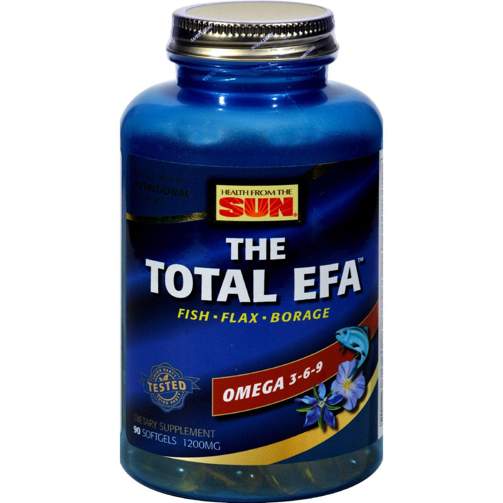 Health From the Sun The Total EFA Fish Oil Description: Omega 3-6-9 Highly Potent Pure Fish Oil Whole Body Health. 1-Month Supply. New and improved Health From The Sun The Total EFA supplies your daily needs for essential fatty acids (EFAs) in an ideal ratio of omega 3-6-9. Now The Total EFA more effectively provides your ideal balance of EFAs with the additional health benefits of a molecularly distilled, pure fish oil concentrate that offers more omega-3 EPA and DHA than their original formula.