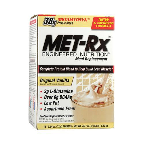 MET-Rx eORIGINALe MEAL REPLACEMENT revolutionized sports nutrition with the METAMYOSYN Protein Blend! The eOriginale MET-Rx Meal Replacement, is back and better than ever with an upgraded formula that is free of aspartame and hydrogenated fats while still featuring the exclusive METAMYOSYN Protein Blend. COMPLETE PROTEIN BLEND TO SUPPORT LEAN MUSCLE*