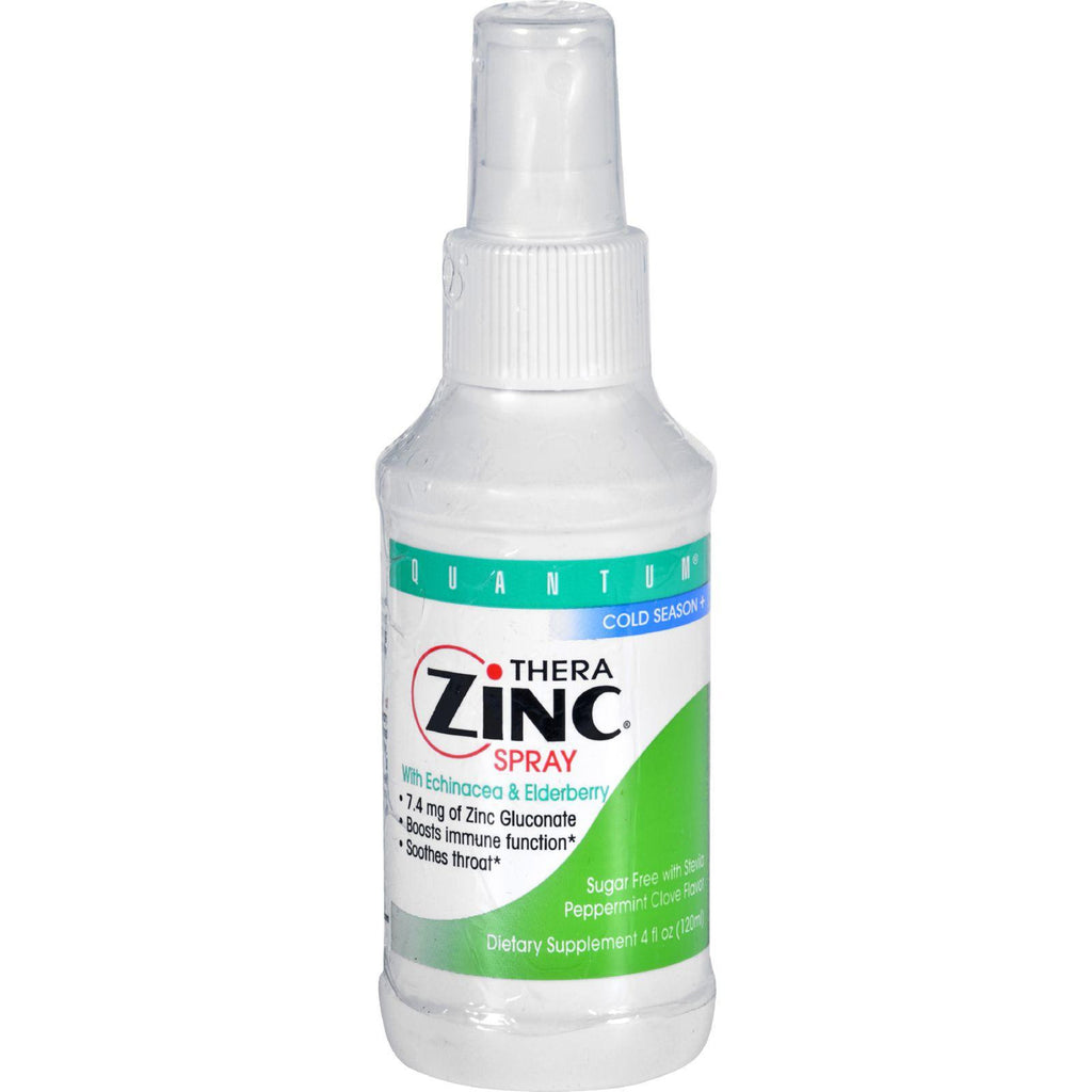 Quantum's Cold Season+ Thera Zinc Spray with zinc, echinacea and elderberry is made to exacting standards using the highest quality ingredients. Disclaimer These statements have not been evaluated by the FDA. These products are not intended to diagnose, treat, cure, or prevent any disease.