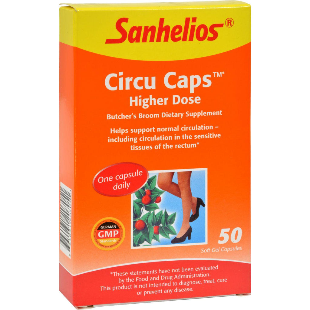 Including Circulation in the Sensitive Tissues of the Rectum The difference is the dosage. Circu Caps Higher Dose contains a more concentrated dried extract equivalent to 900mg Butcher's Broom rhizome per capsule. It's 3 times stronger per serving than regular Circu Caps/ So all you need is one capsule daily to help support normal circulation - including circulation in the sensitive tissues of the rectum. Can even be used of you experience occasional heaviness in the legs. Free Of Augarm preservativism artificial colors and flavoring. Disclaimer These statements have not been evaluated by the FDA. These products are not intended to diagnose, treat, cure, or prevent any disease.