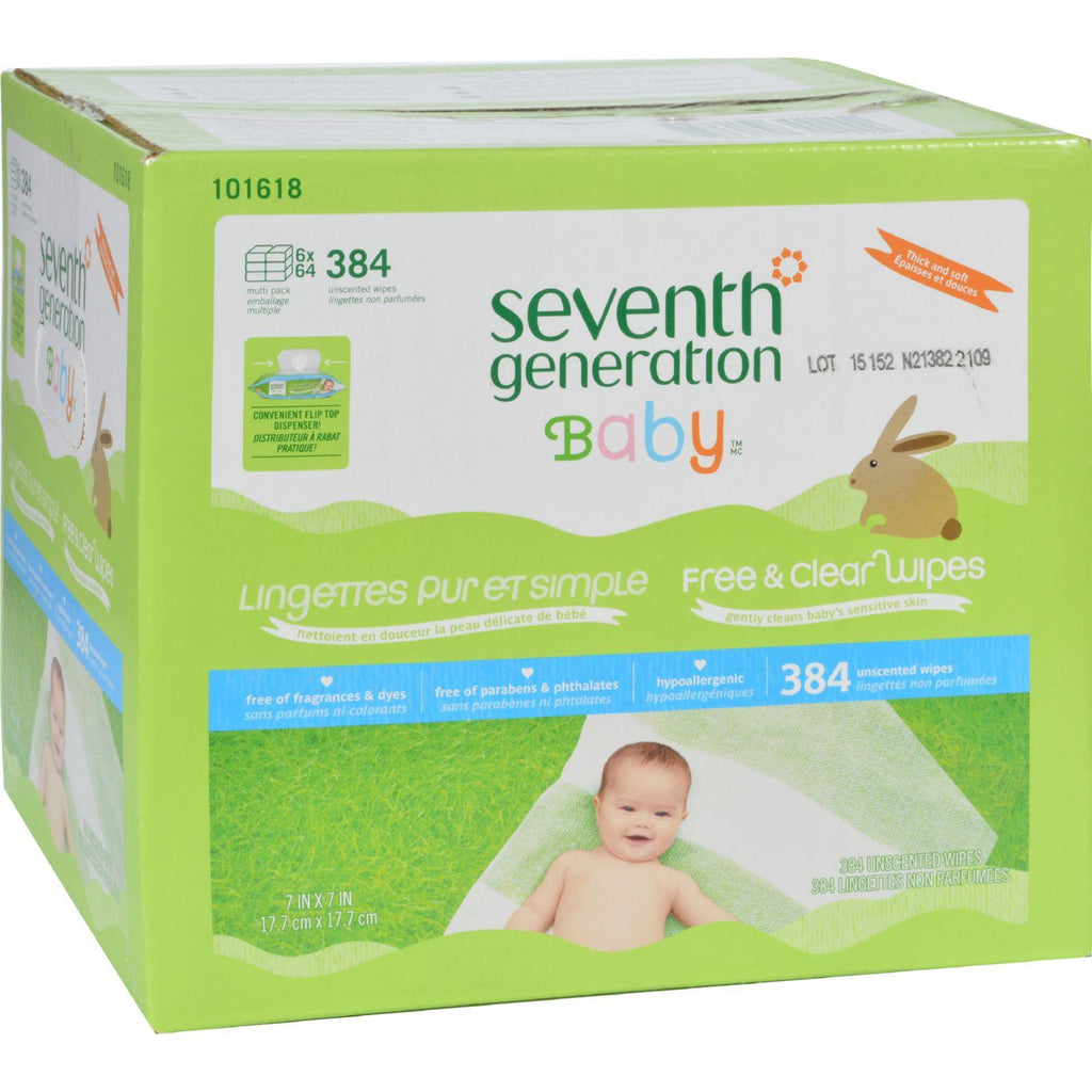 Seventh Generation Baby Wipes - Free And Clear - Multipack - 64 Wipes Each - 6 Count